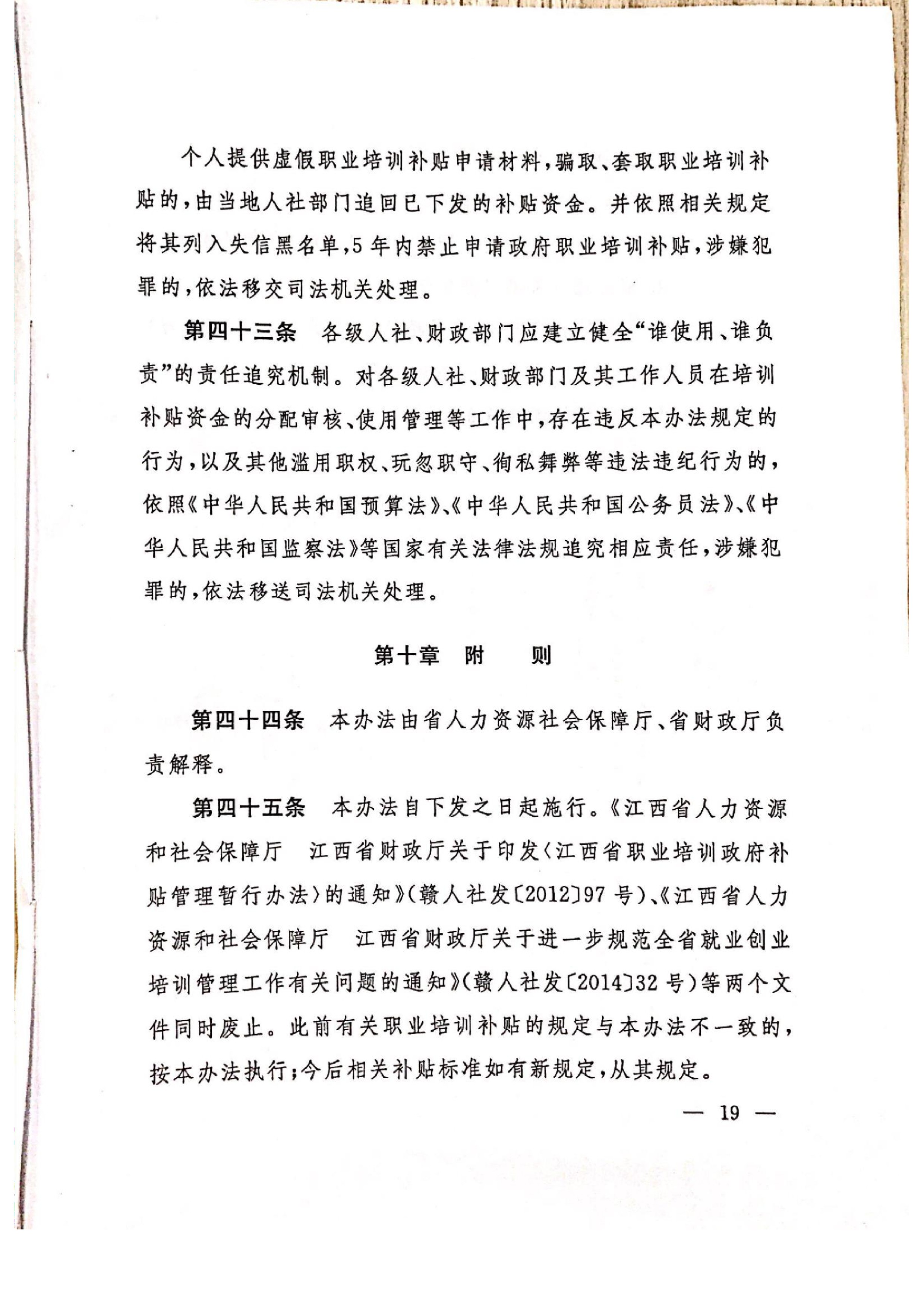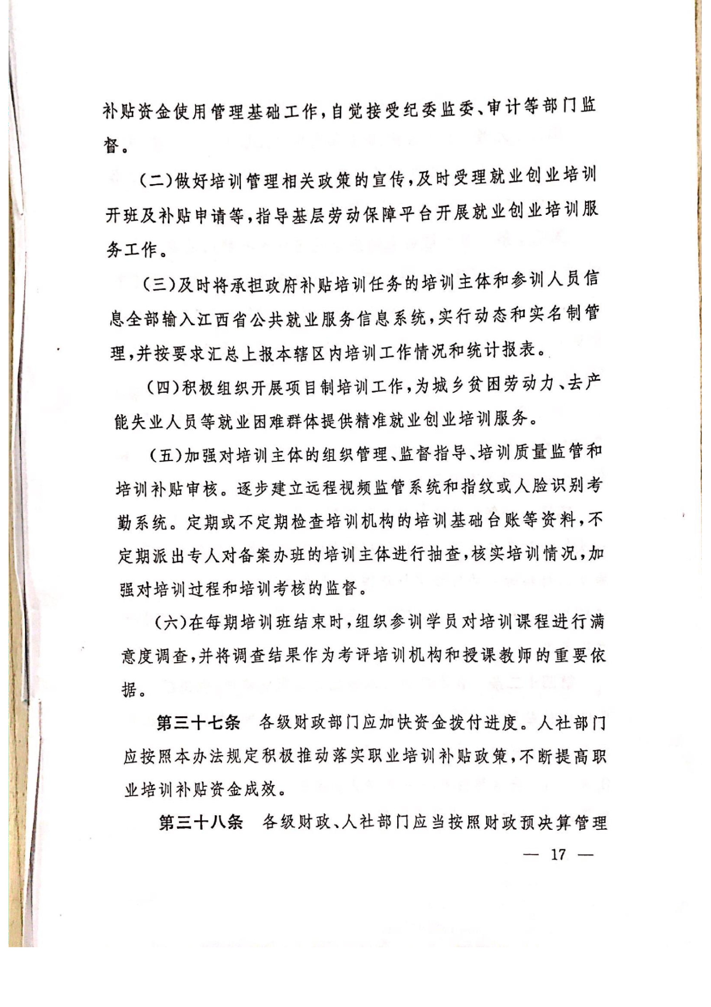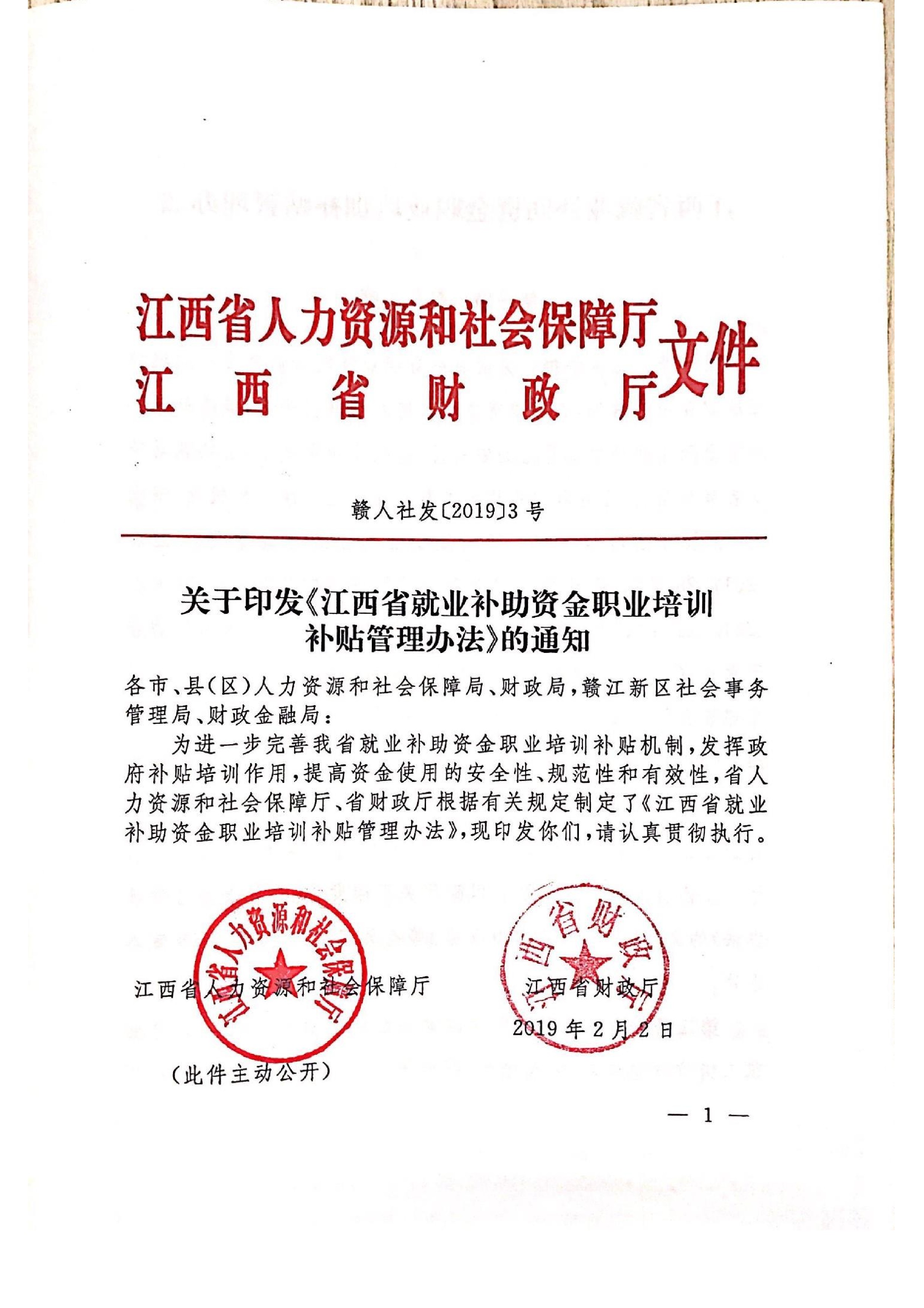 关于印发《江西省就业补助资金职业培训补贴管理办法》的通知(赣人社发)